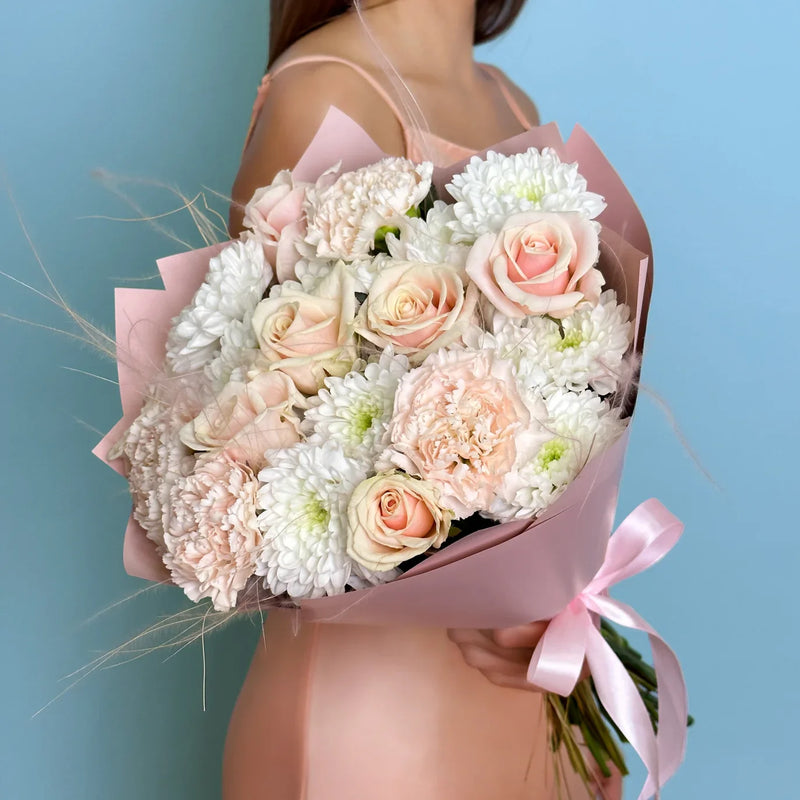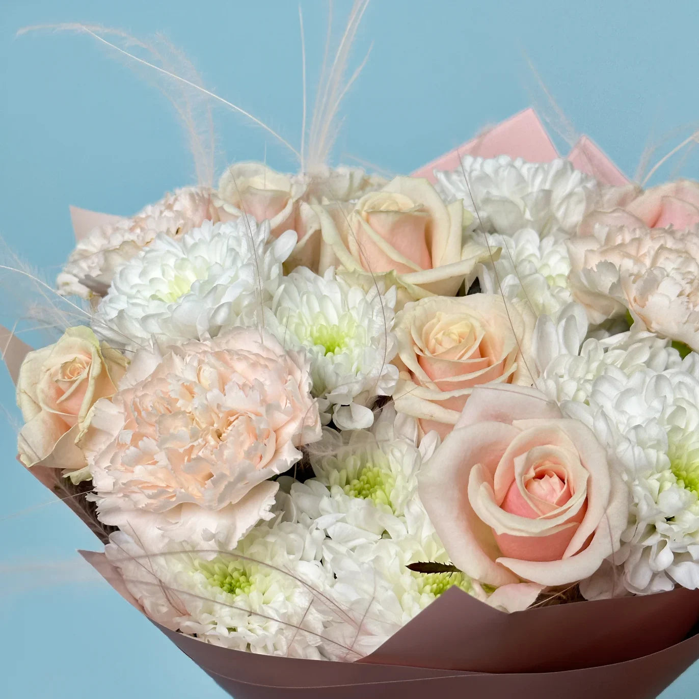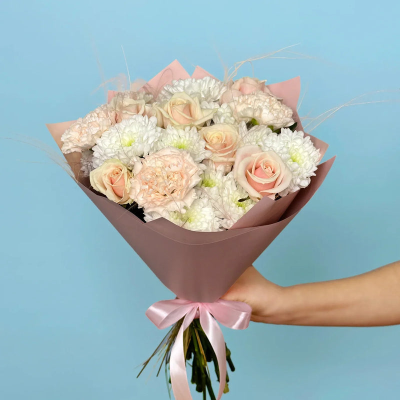 A beautiful bouquet. I was very pleased. It was delivered quickly. The courier was polite. Everything was beautifully and neatly packaged. Thank you very much!