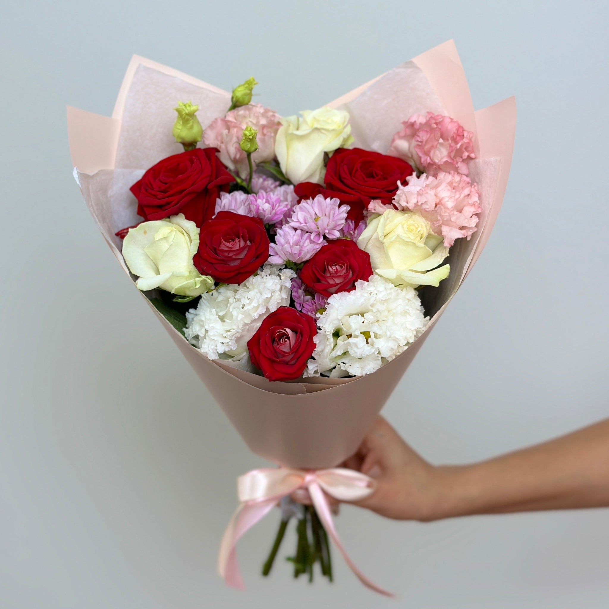 A beautiful bouquet. I was very pleased. It was delivered quickly. The courier was polite. Everything was beautifully and neatly packaged. Thank you very much!