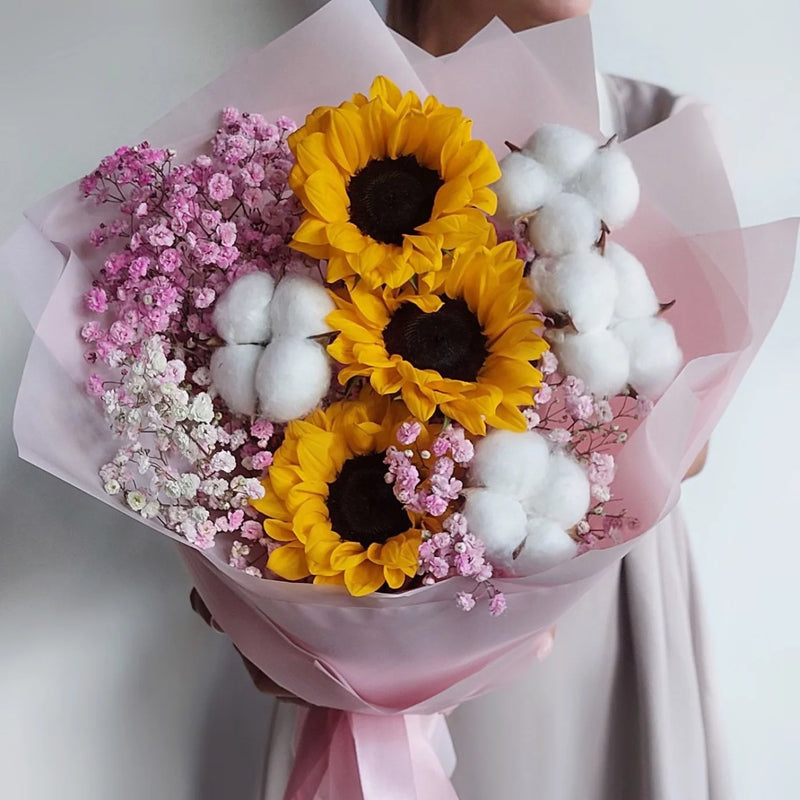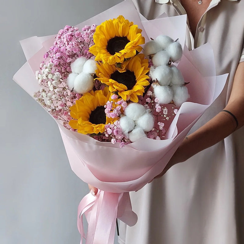 A beautiful bouquet. I was very pleased. It was delivered quickly. The courier was polite. Everything was beautifully and neatly packaged. Thank you very much!